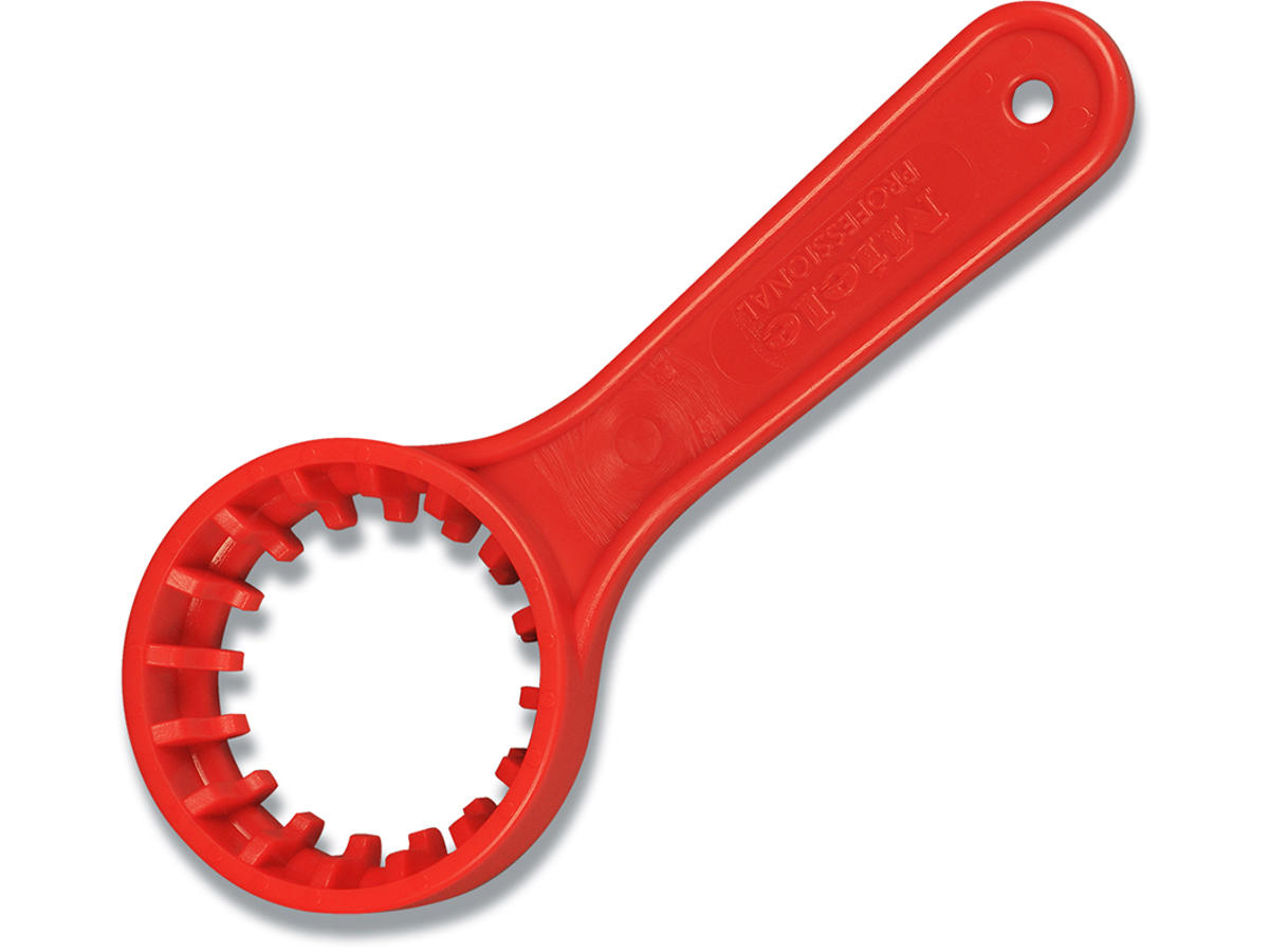 Bruges til åbning af dunke med skruelåg. Åbneren kan anvendes på 10 og 25 kg dunke. Sæt åbneren på skruelåget og drej med urets retning for at åbne dunken.