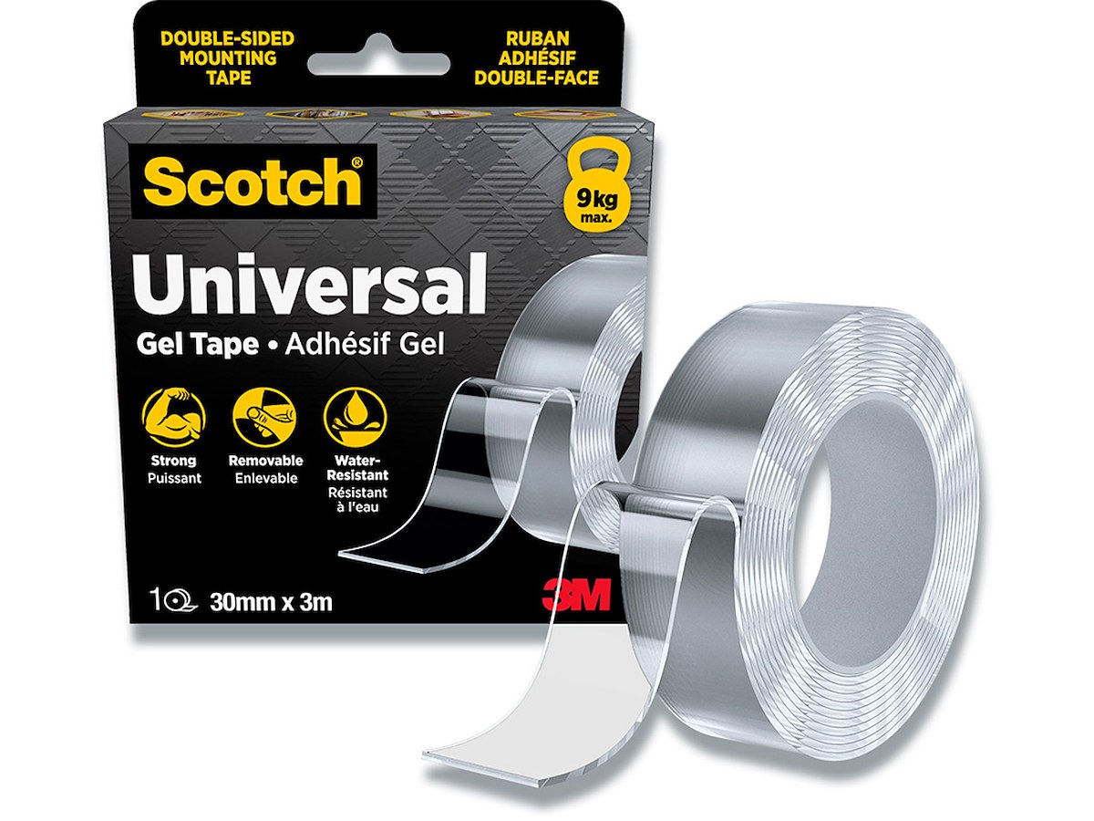 Scotch Universal Gel Tape Ideel til hårde overflader, herunder metal, hærdet glas, fliser, glat sten, mursten, vinylbeklædning og akryl – ligesom nano-tape. Denne dobbeltsidede tape er ekstra stærk og kan holde op til 9 kg, hvilket gør den velegnet til både lette og tunge monteringsopgaver. Den aftagelige monteringstape eliminerer behovet for søm eller skruer. Det vandafvisende design sikrer en stærk binding – selv i våde eller fugtige omgivelser. Velegnet til indendørs dekoration og monteringsprojekter. Hver pakke indeholder én rulle Scotch ekstra stærk dobbeltsidet monteringstape.