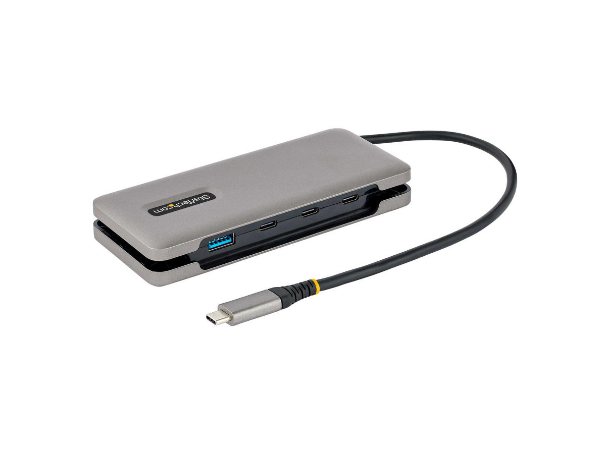 This 4-Port USB-C Hub expands the connectivity of a USB-C laptop. This hub features four USB 3.2 Gen 2 (10Gbps) enabled ports, three USB-C and one USB-A, that support high-bandwidth USB peripherals. Connect the attached USB-C cable to a USB Type-C™ or Thunderbolt™ 3/4 port, located on the host computer, to enable the quick connection of up to 4 peripherals.