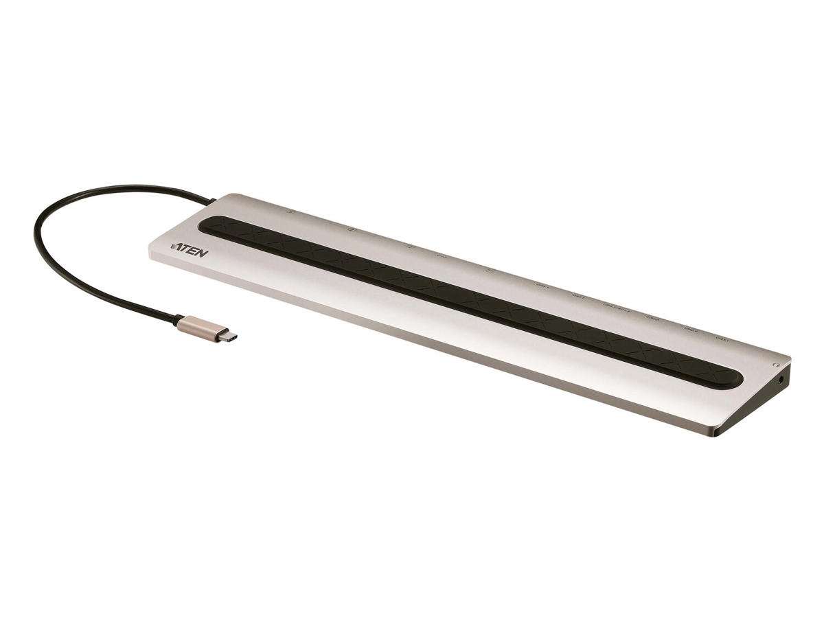 The ultra-sleek ATEN USB-C Multiport Dock is a one-step total upgrade for your laptop that provides all the extra expansion capabilities that you need. Simply use one cable to add up to 13 devices, with power delivery pass-through to boost your productivity with extra HDMI, VGA, USB 3.2 Gen 1, USB 2.0, SD/MicroSD, Ethernet and Audio connections.