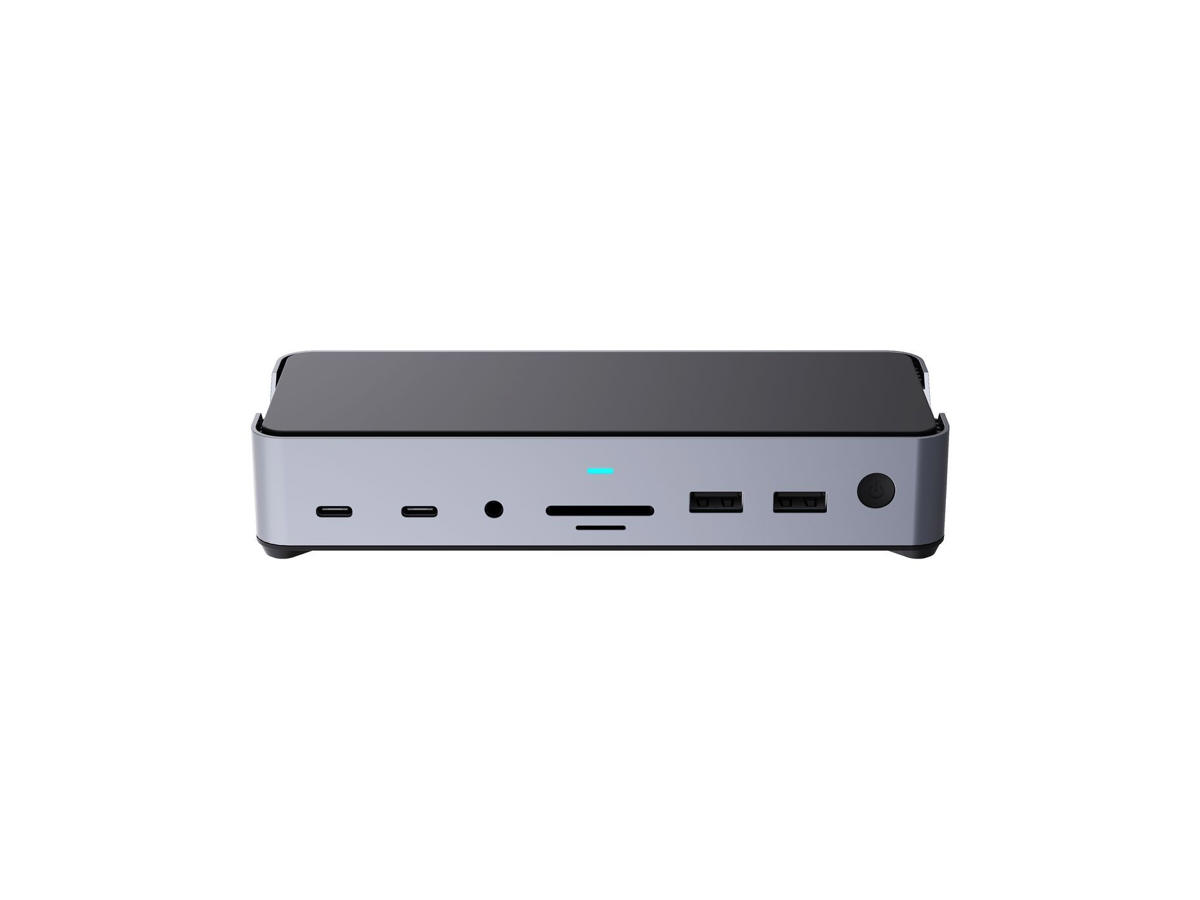 The stylish alunimium housing combines high performance and flexibility with a wide range of features including up to 100W PD charging, gigabit ethernet with PXE boot and MAC address passthrough, five USB ports to connect devices and card readers.