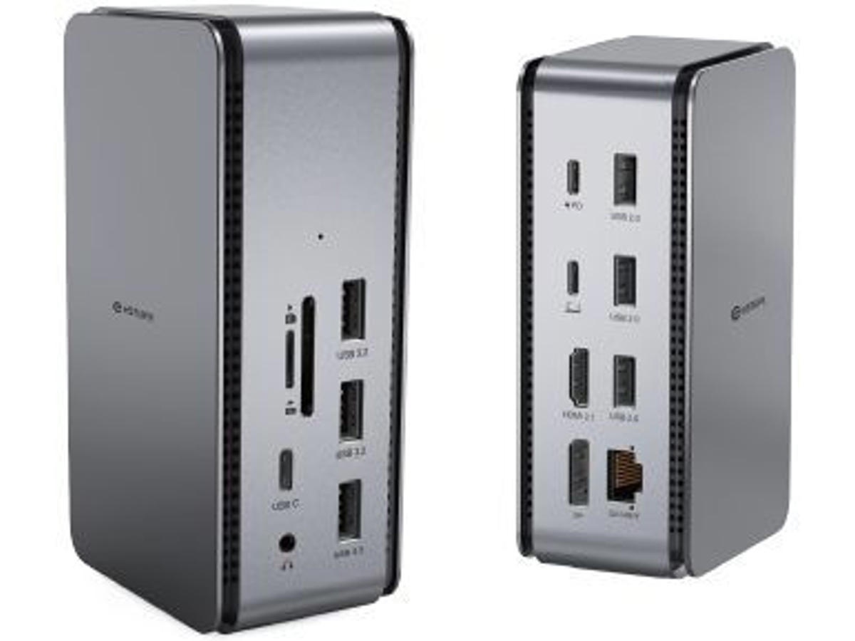 This eSTUFF USB4 Dual dock features the latest VL830 high speed docking technology that turns your laptop into a powerhouse workstation combining PD power up to 100W and productivity in a compact size.