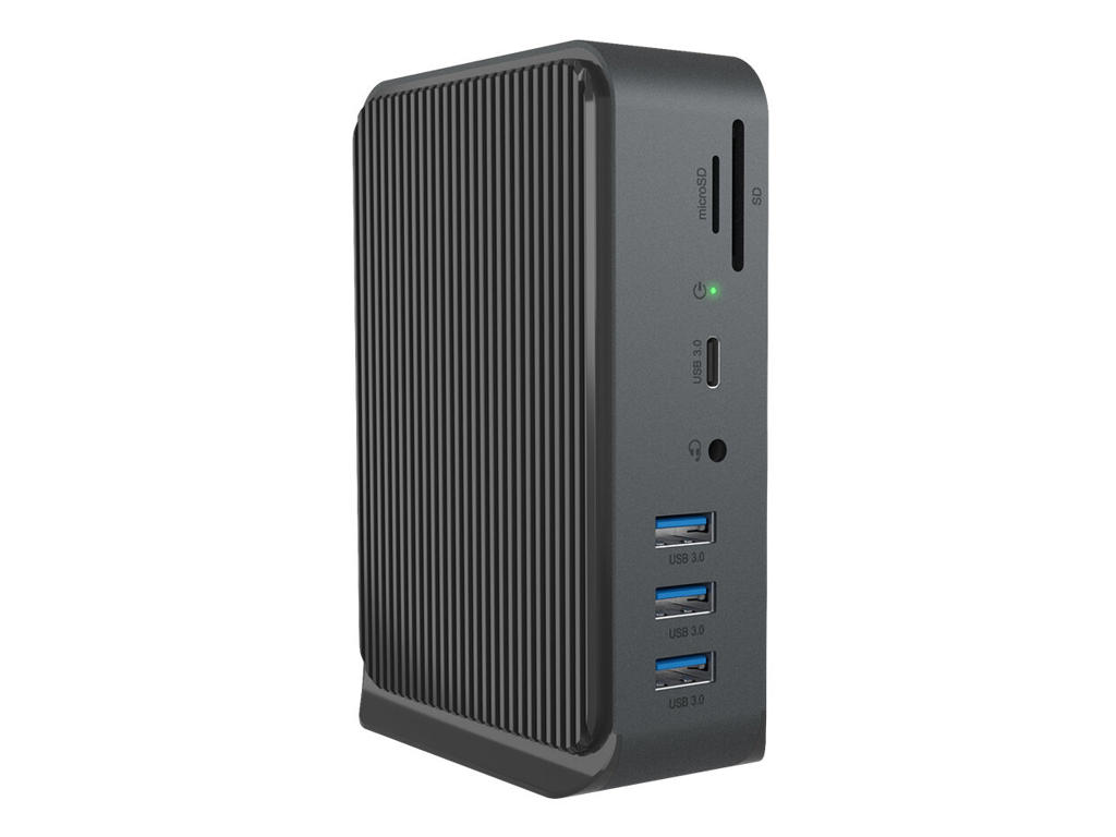 This DockingStation uses only DisplayLink® technology to transfer data and video signals and connects via a USB 3.2 Gen 1 Type-C® or Type-A port on the computer. Compatible operating systems are macOS®, Windows®, Chrome OS™ or Ubuntu® (Linux), provided the latest DisplayLink® software is installed.