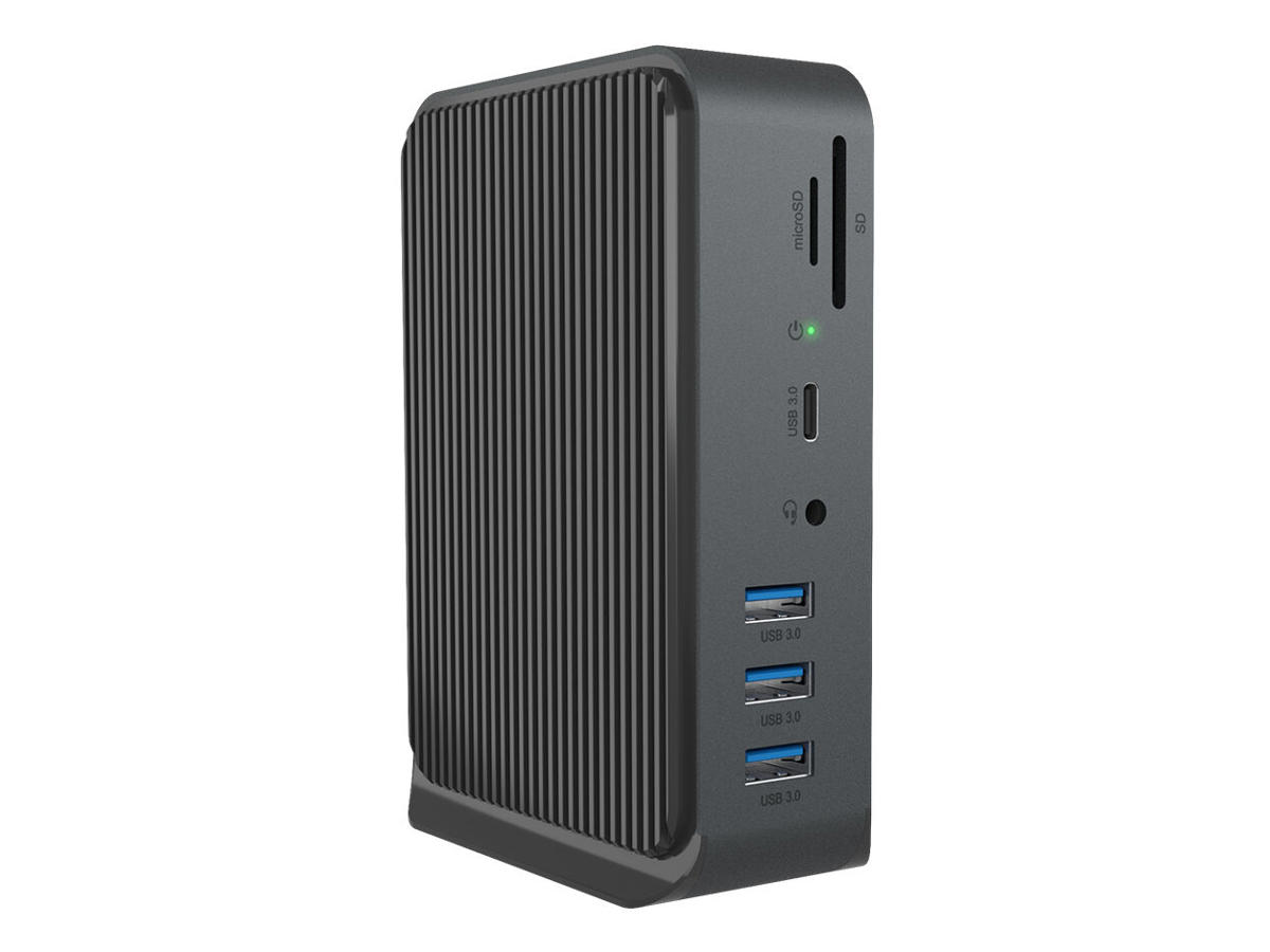 Fed up with the uniformity of DockingStations that always look the same? Then take a look at the newly developed dock from ICY BOX. A fine material mix of high-quality plastic and aluminium, discreet anthracite, standing and space-saving, it blends into almost any workplace environment