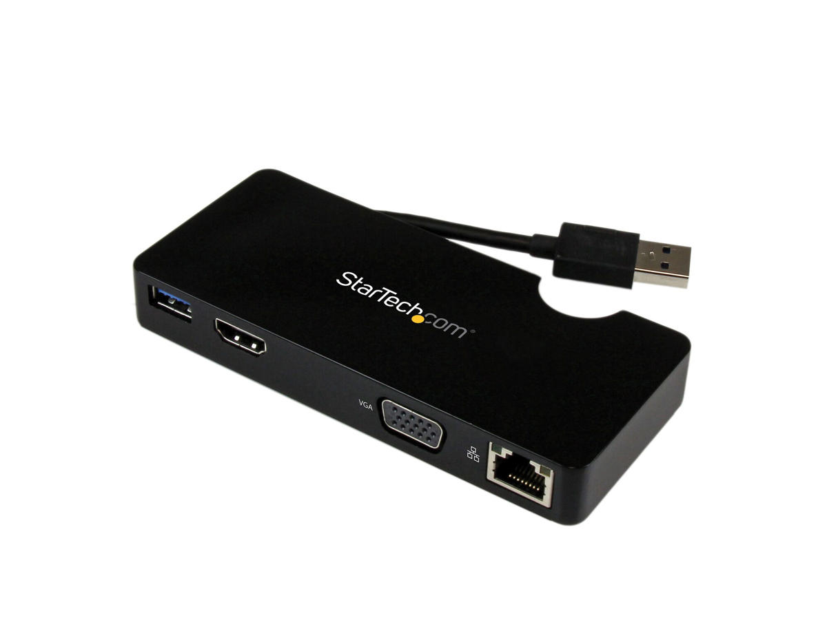 The travel docking station for laptops lets you transform your laptop or Ultrabook™ into a mobile workstation. It adds HDMI® or VGA video output, a USB 3.0 hub port, and a Gigabit Ethernet RJ45 port, through a single USB 3.0 host connection. The travel-friendly dock helps you overcome the port limitations of modern mobile computers, making it ideal for your laptop, Microsoft Surface™ Pro 4, Surface Pro 3, Surface 3, Surface Pro 2 or Surface Book.