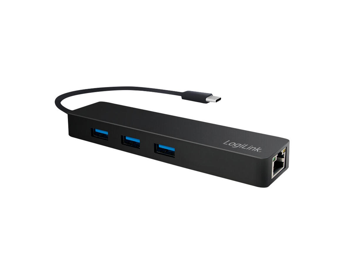 LogiLink UA0313. Værtsgrænseflade: USB 3.2 Gen 1 (3.1 Gen 1) Type-C. Produktfarve: Sort, Hub-grænseflader: RJ-45, USB 3.2 Gen 1 (3.1 Gen 1) Type-A. Bredde: 319 mm, Dybde: 29 mm, Højde: 15 mm