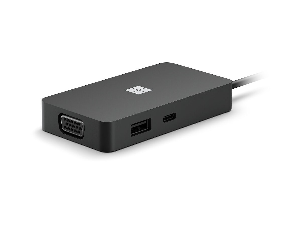 Microsoft USB-C Travel Hub. Værtsgrænseflade: USB 3.2 Gen 2 (3.1 Gen 2) Type-C. Produktfarve: Sort, Hub-grænseflader: HDMI, RJ-45, USB 3.2 Gen 2 (3.1 Gen 2) Type-A, USB 3.2 Gen 2 (3.1 Gen 2) Type-C, VGA. Strømforsyningstype: USB. Understøttede Windows-operativsystemer: Windows 10 Home, Windows 10 Pro, Windows 7 Professional, Windows 8, Understøttede Mac-operativsystemer: Mac OS X 10.14 Mojave, Mac OS X 10.15 Catalina, Mac OS X 10.15.3 Catalina, Andre understøttede operativsystemer: Android. Bredde: 89 mm, Dybde: 48 mm, Højde: 15 mm