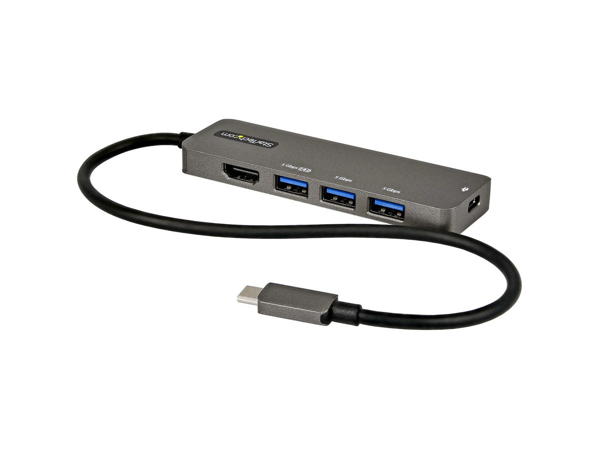 This USB-C multiport adapter with DP 1.4 supports 4K 60Hz HDMI® and turns your MacBook Pro, Dell XPS, or other USB-C™ laptops or tablet into a workstation, anywhere you go. The USB Type-C multiport adapter provides 4K HDMI video output, three USB 3.2 Gen 1 Type-A (5Gbps) ports including one BC 1.2 charge port; one USB-C port supporting both the 100W PD passthrough, all through one connection to your laptop's USB-C or Thunderbolt 3™ port. Plus, it offers advanced charging through USB Power Delivery 3.0 and an extra-long attached 12-inch (30 cm) host cable for an extended reach to offer more set up flexibility.