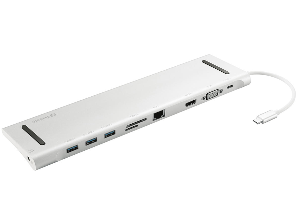 Med en enkelt USB-C stik tilslutning til din laptop, får du med Sandberg USB-C 10-in-1 Docking Station mulighed for at tilslutte alt dit udstyr: