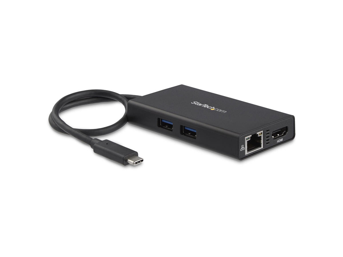 The versatile USB-C adapter lets you create a dual-monitor workstation virtually anywhere, providing 4K Ultra HD (3840 x 2160p) HDMI output with 30 Hz refresh rate and audio, two USB 3.0 ports, and a Gigabit Ethernet port, with support for USB Power Delivery 2.0.