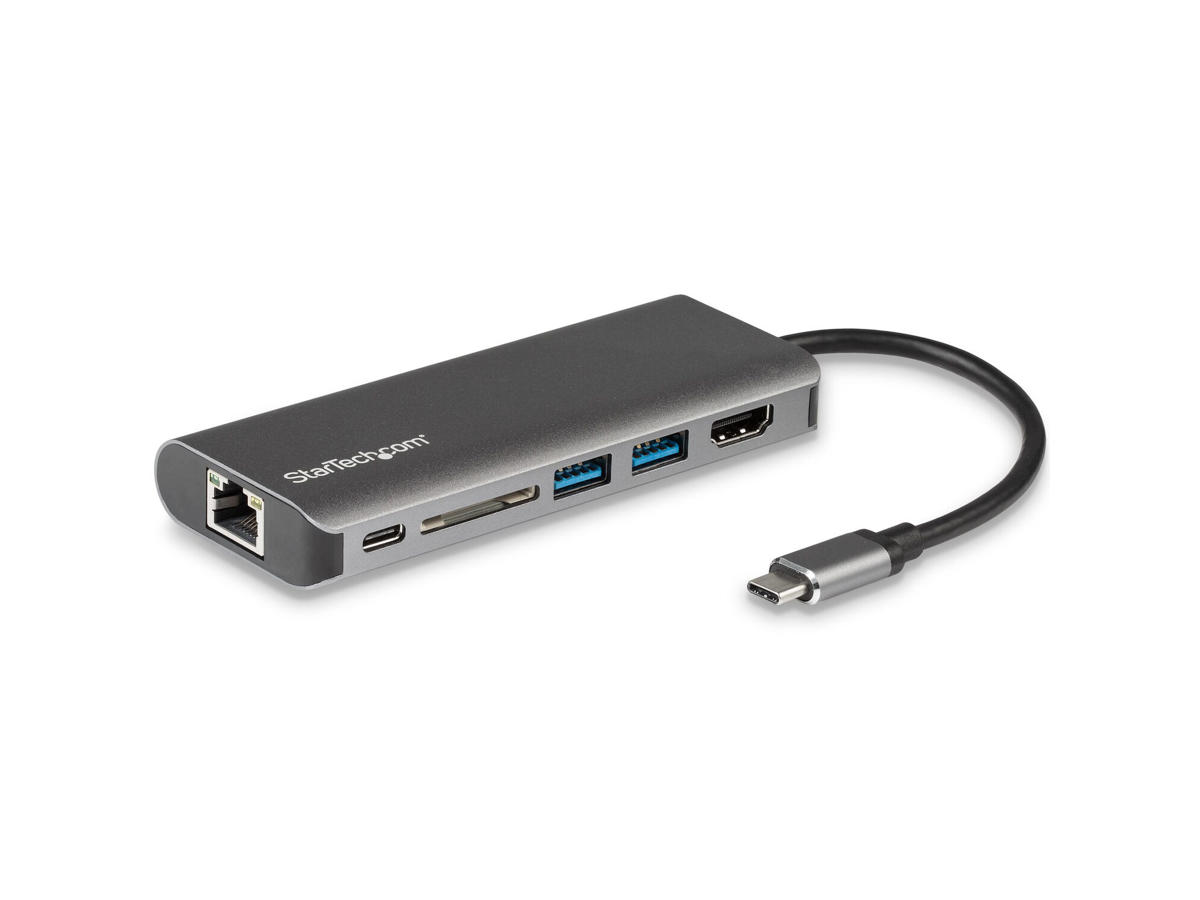 Expand the connectivity of your USB-C™ enabled laptop. This USB-C multiport adapter lets you turn your laptop into a powerful workstation, virtually anywhere you go, and eliminates the hassle of carrying and connecting many different port adapters. The USB-C adapter lets you add 4K Ultra HD HDMI® video output, two USB 3.0 Type-A ports, one Gigabit Ethernet port and one SD card reader slot through your laptop’s USB-C port.