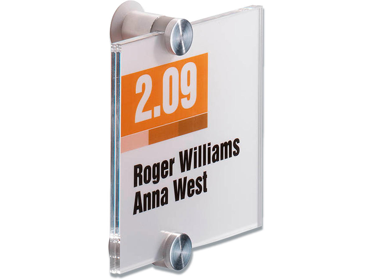 CRYSTAL SIGN dørskilt er en vellykket kombination af design og høj funktionalitet. Skiltet er udført i akrylplast som er sammensat af 2 stk dekorative skruer. Dørskiltet måler 105x105 mm. 2 stk. halvgennemsigtige indstiksark medfølger til hvert skilt, og disse kan nemt skrives ud på en laserprinter (ikke Blækprinter). Indstiksarket kan også bestilles separat (Durable art nr DU4830-19). Anvend DURAPRINT online som kan hjælpe med at fremstille en personlig designet indstiksetiket til skiltet - Klik her
