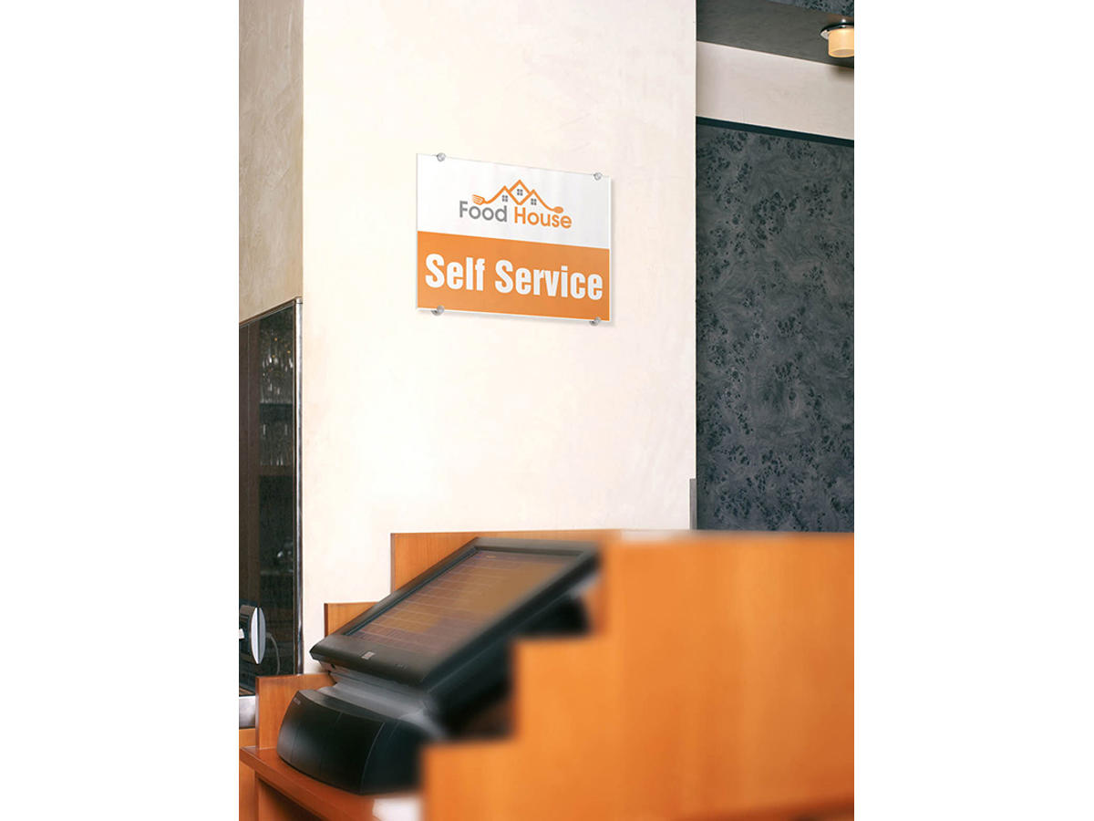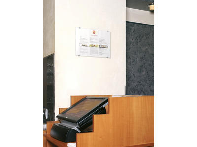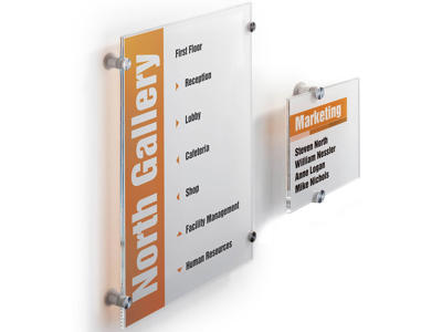 CRYSTAL SIGN dørskilt er en vellykket kombination af design og høj funktionalitet. Skiltet er udført i akrylplast som er sammensat af 2 stk dekorative skruer. Dørskiltet måler 297x420 mm. A3 høj. 2 stk. halvgennemsigtige indstiksark medfølger til hvert skilt, og disse kan nemt skrives ud på en laserprinter (ikke Blækprinter). Indstiksarket kan også bestilles separat (Durable art nr DU4836-19). Anvend DURAPRINT online som kan hjælpe med at fremstille en personlig designet indstiksetiket til skiltet -