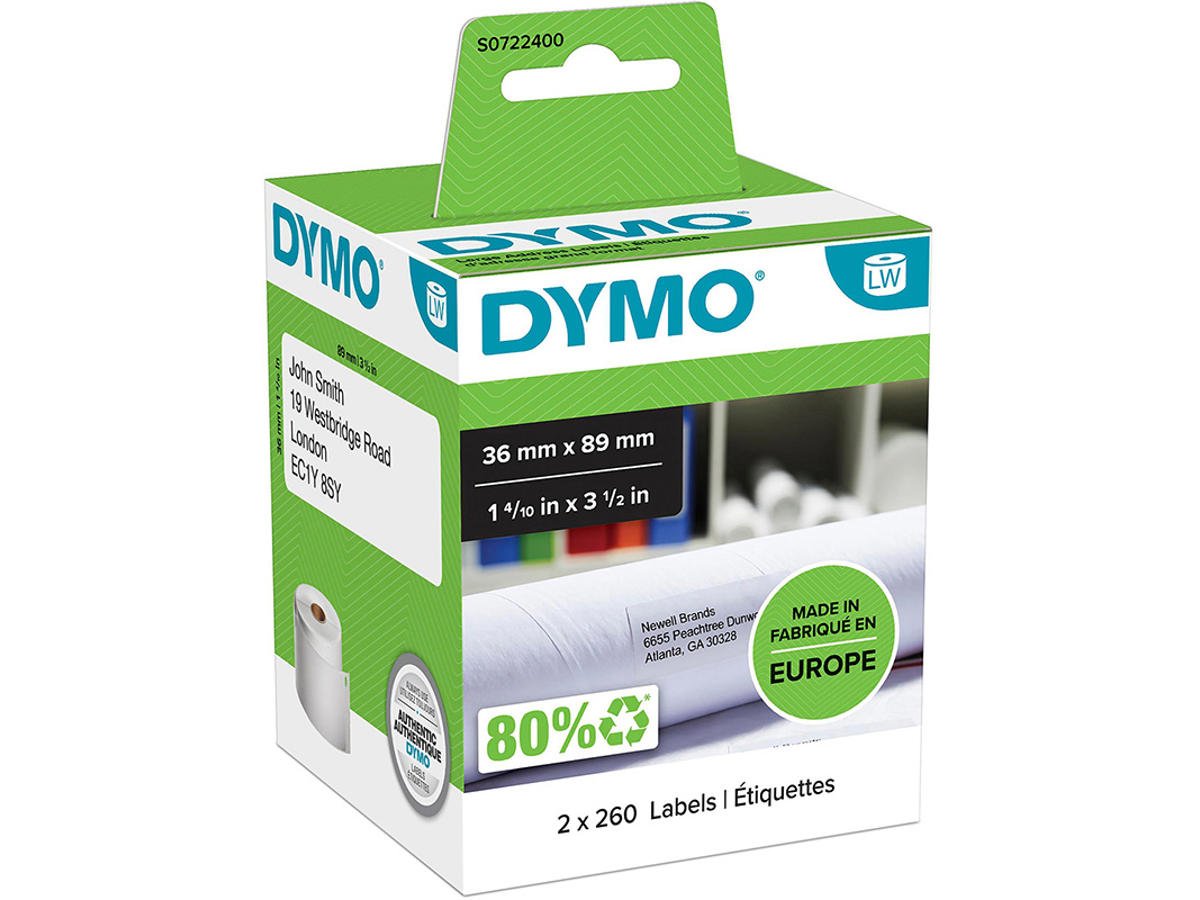 Labeletiketter, Adresse, 36x89 mm, 2 ruller af 260 etiketter, Dymo LabelWriter 99012