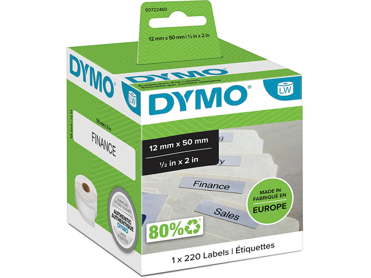 Labeletiketter, Hængemapper, 12x50 mm, 1 rulle af 220 etiketter, Dymo LabelWriter 99017
