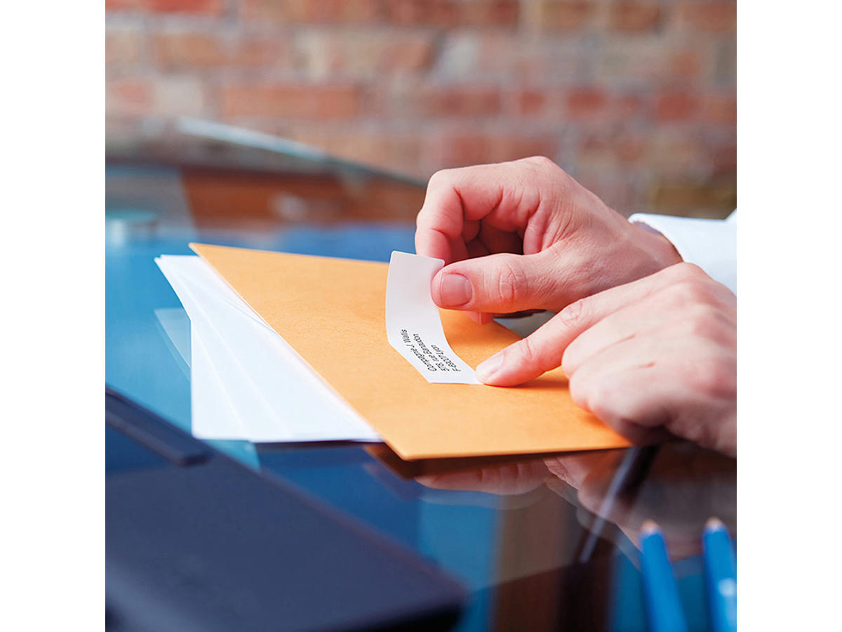 Dymo LabelWriter etiketter forhandles i mange forskellige størrelser og med aftagelig eller permanent lim.
