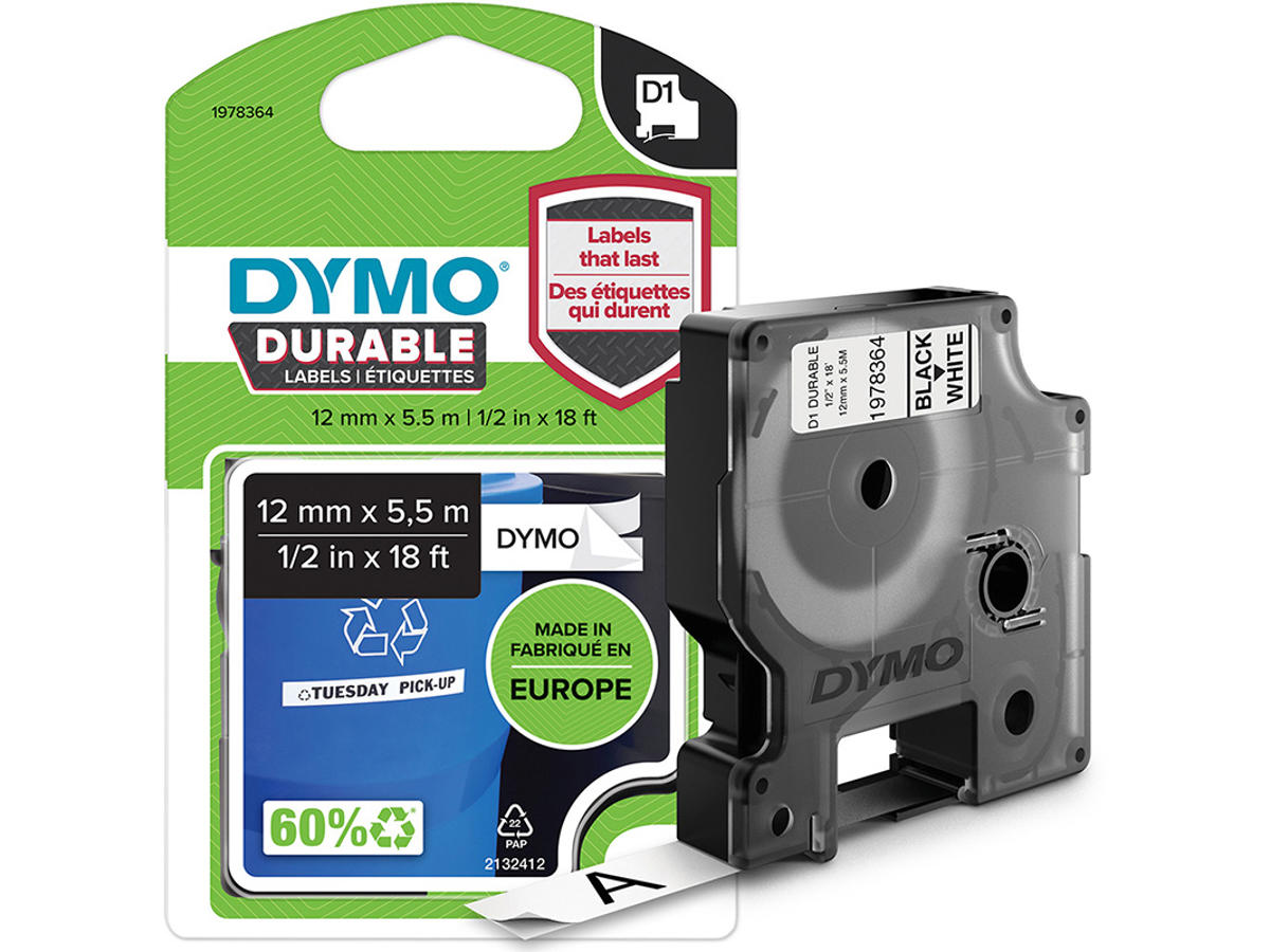 Med Dymo Durable D1 tape kan du lave ekstra holdbare etiketter, som modstår de mest krævende forhold. Bestandig over for fugt, kulde, varme, kemikalier og lys. Tåler endog en tur i opvaskemaskinen. Vil du se produktvideoer? Dansk Dymo Youtube kanal: - Klik her Amerikansk Dymo Youtube kanal: - Klik her