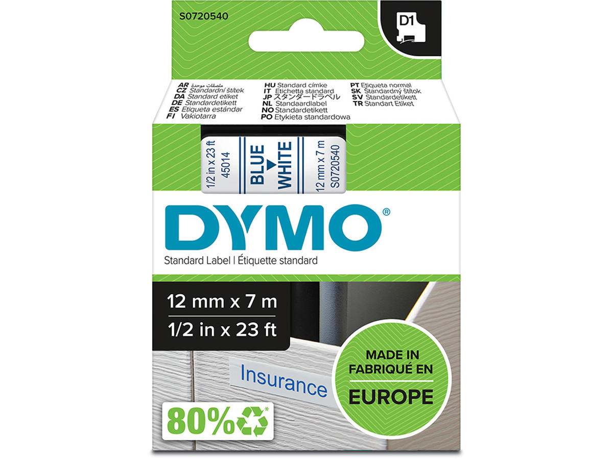 Labeltape, 12mm x 7m, Blå på Hvid, 1 rulle, Dymo D1 45014