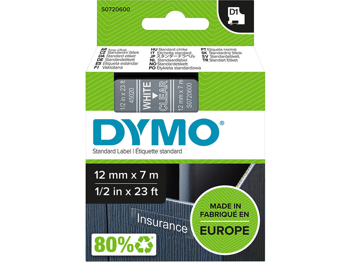 Tapen er emballeret i praktisk plastdispenser som blot skal sættes i Dymo`en.