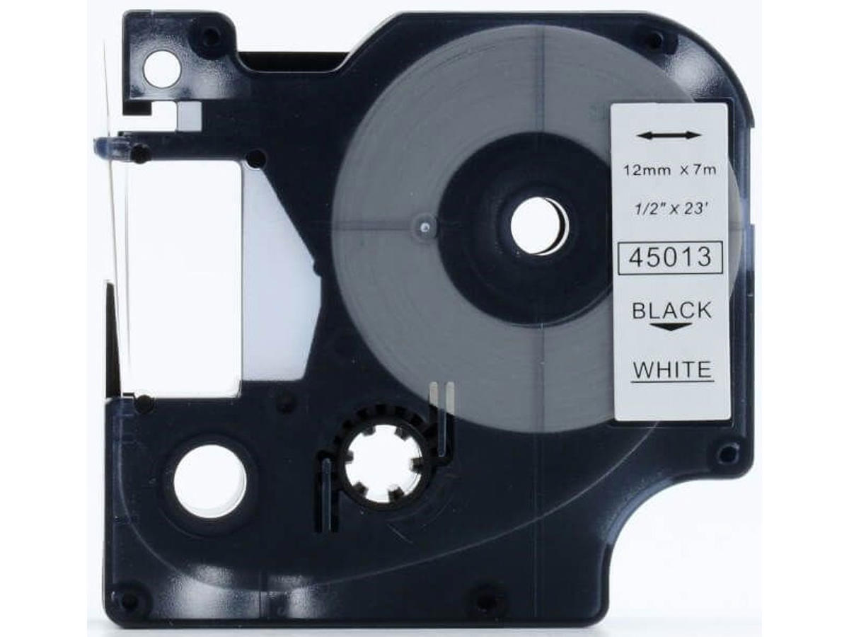 Labeltape, 12mm x 7m, Sort på Hvid, 1 rulle