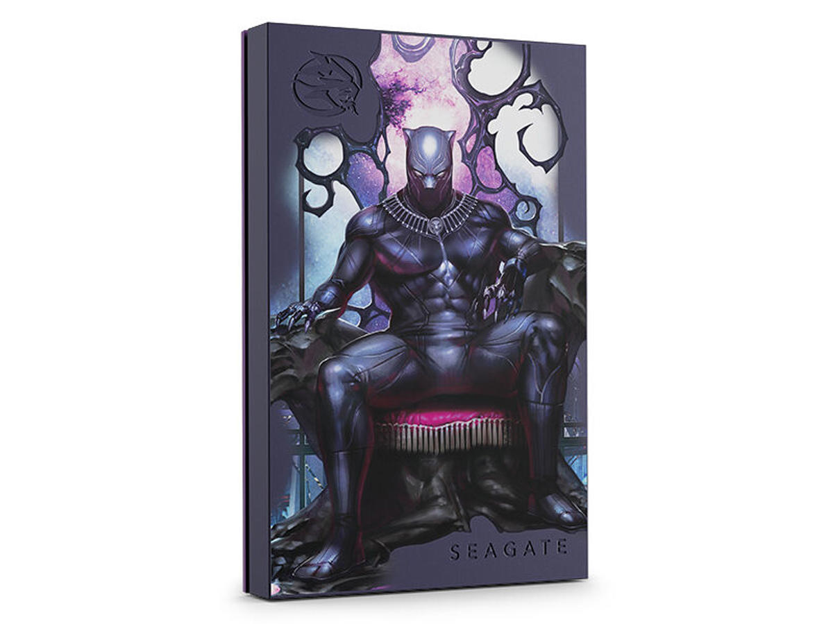 This FireCuda External Hard Drive is designed with T’Challa gazing proudly upon his kingdom.