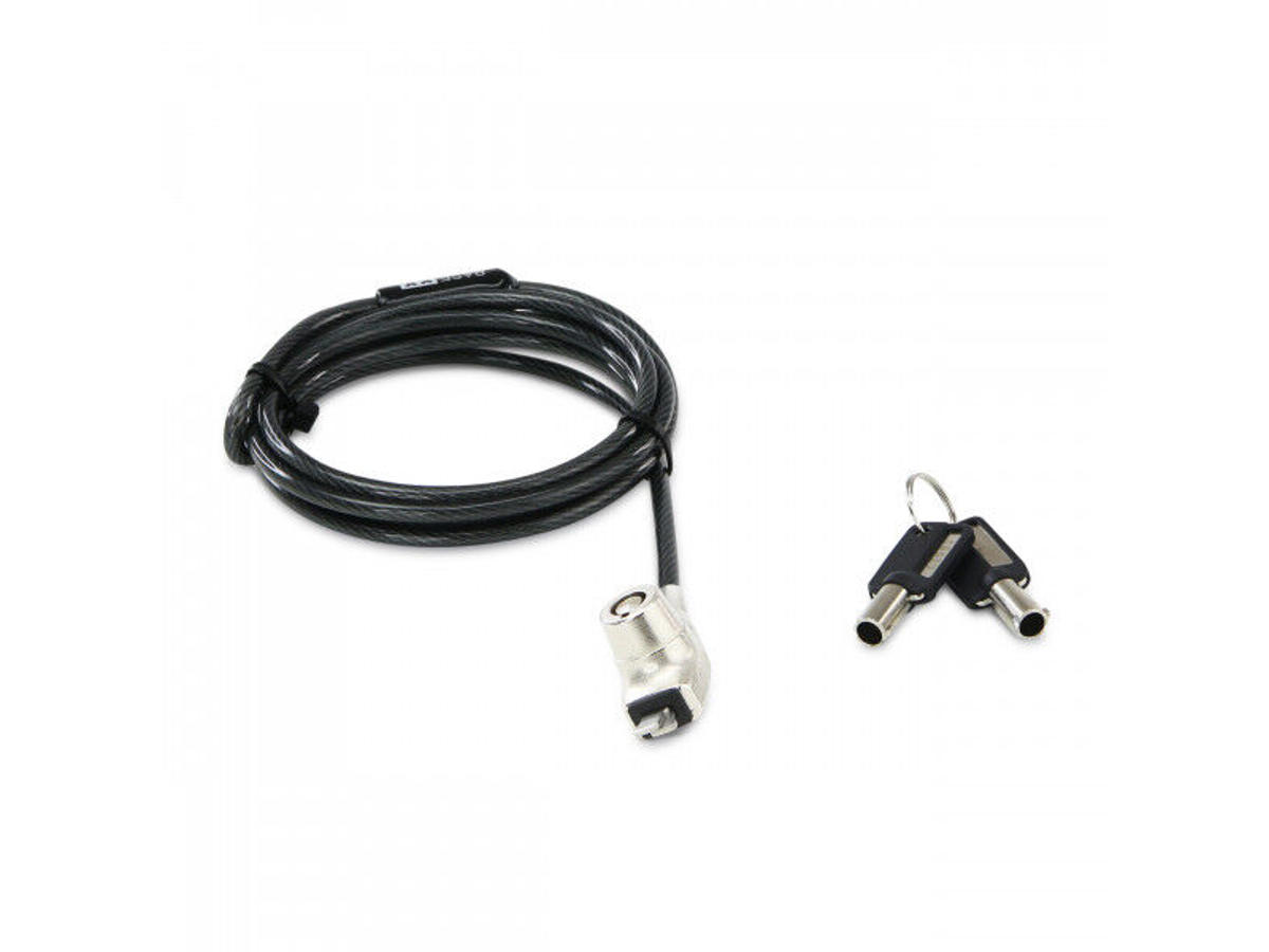 Notebooks as well as projectors, monitors and printers can be effectively secured with the BASE XX locking systems. The Cable Lock Nano is suitable for all models with the commonly used 2.5 x 6mm slot and compatible with the Kensington Nano Security Slot*. Flexible workplace design thanks to rotatable head. The sheathed multi-strand steel cable is 1.5m long and has a diameter of 4.4mm. The functional Velcro strap allows the cable to be rolled up for compact storage and transportation. Two keys are included as part of the delivery. This lock is a standalone version and cannot be integrated into a larger locking system. *Nano Security Slot™ is a trademark of a third party without a connection to BASE XX.