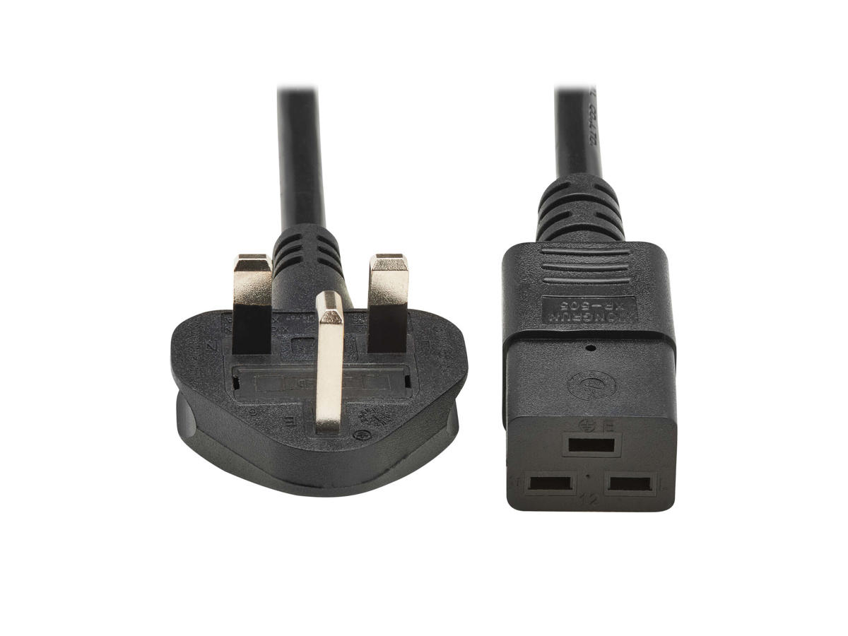 This VDE-compliant power cable connects a switch, router, blade server or other device with a C20 inlet to a PDU, UPS system or surge protector with BS 1363 outlets. It can also extend an existing power connection up to 2.5 meters (8.2 feet). The P052-2P5M-UK features a BS 1363 end for connecting to an AC power source and an IEC-320-C19 end for connecting to a network device in a data center or other IT application.
