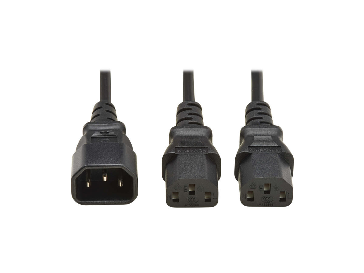C14-to-C13 Y-Style Splitter Cord Connects 2 Devices with C14 Inlets to One C13 Outlet