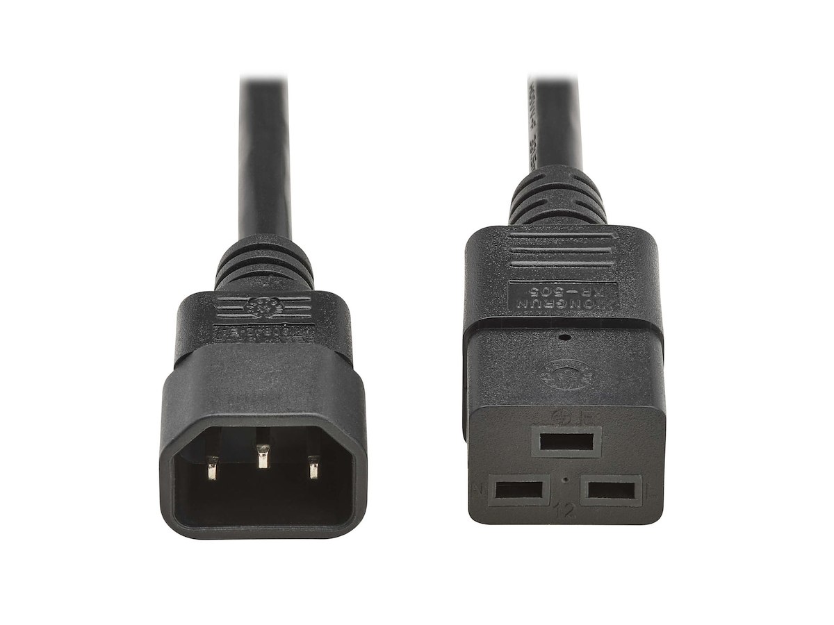 This VDE-compliant power cable connects a computer, server, hard drive or other device with a C20 plug to a PDU, UPS system or surge protector with C13 outlets. It can also extend an existing power connection up to two meters (6.6 feet). The P047-02M-EU features an IEC-320-C14 end for connecting to an AC power source and an IEC-320-C19 end for connecting to a device in a small data center or office workstation application that does not require a heavy-gauge connection.
