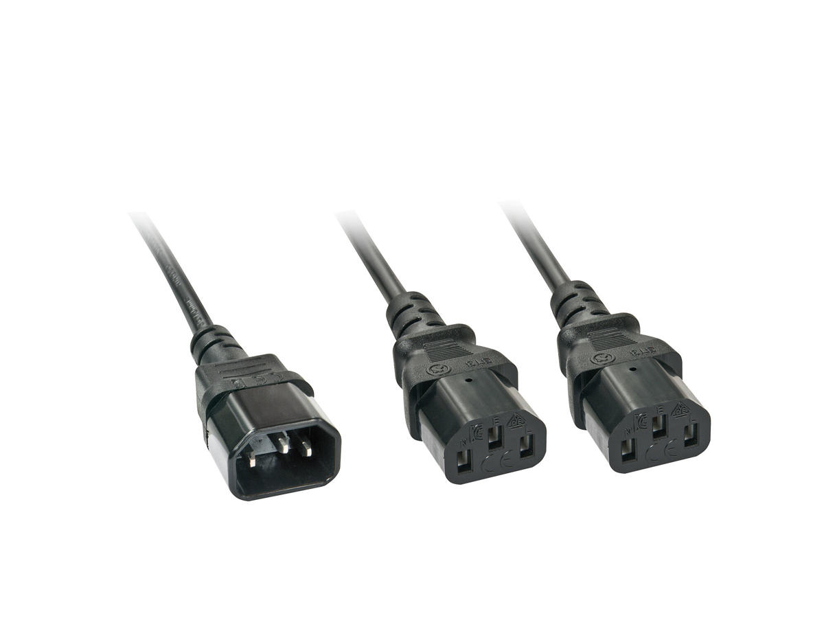 Lindy 30039. Kabellængde: 2 m, Stik 1: C14 forbinder, Stik 2: 2 x C13 forbinder