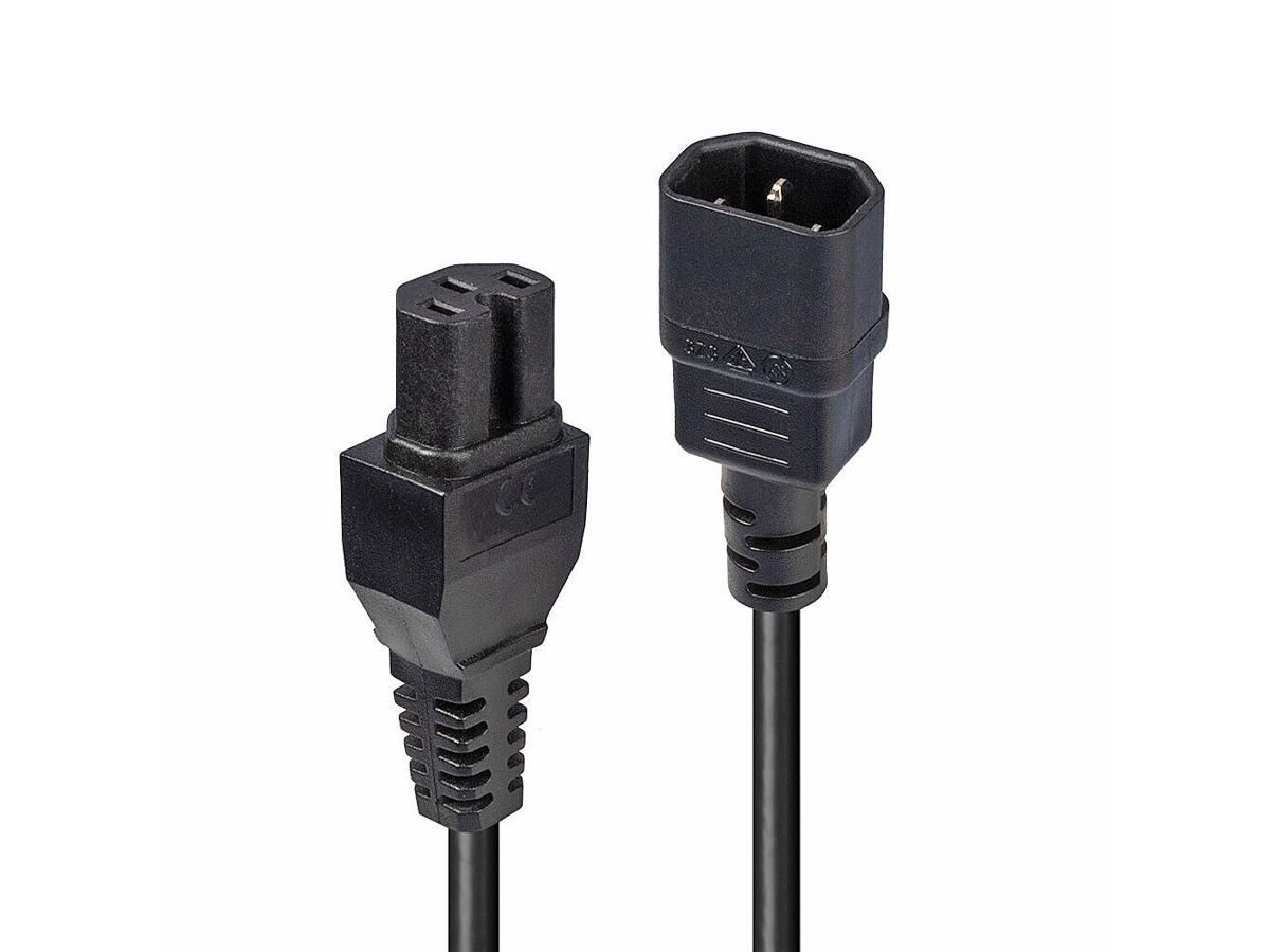 Lindy 30314. Kabellængde: 2 m, Stik 1: C14 forbinder, Stik 2: C15 forbinder, Kabeltype: H05VV-F3G. Indgangsspænding: 250 V, Indgangsstrøm: 10 A