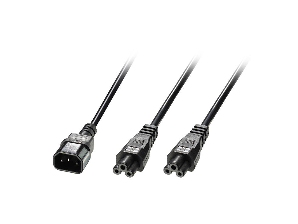 Lindy 30370. Kabellængde: 2,5 m, Stik 1: C14 forbinder, Stik 2: 2 x C5 kobling