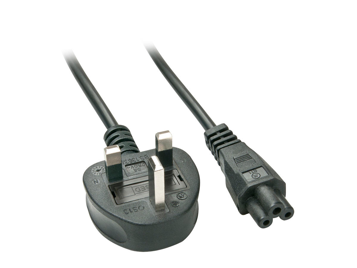 This cable is perfect for the connection between a notebooks' power supply and the English electricity grid. It is an ideal replacement for a missing or damaged laptop power cable as the C5 connector is used on most major laptop power supplies.