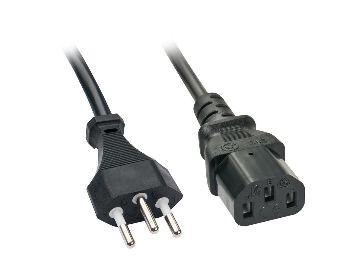 • IEC power cable with Swiss mains plug to IEC - 320 C13 coupling as power cable for PC’s, monitors, printers, etc.
