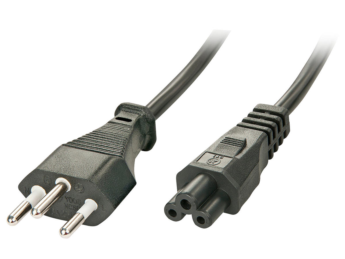 Power cable for notebooks, Swiss plug - IEC-320 C5 (Mickey Mouse) coupling.