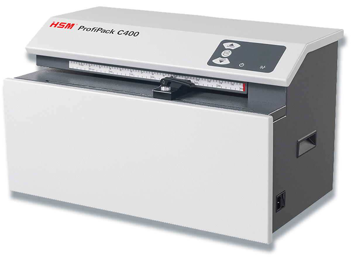 Med denne emballage maskine kan du behandle pap så du får pakkefyld i ét arbejdstrin. Den kompakte model kan stilles hvor som helst for optimal fleksibilitet. Skæreenheden tackler metal klammer.