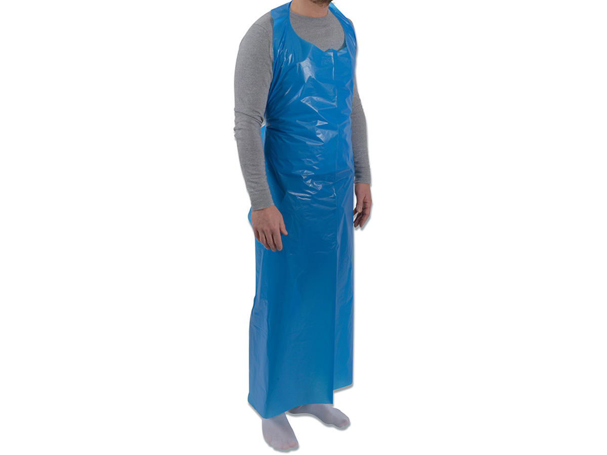 Engangsforklæde, neutral, 150x85cm, 35 micron, blå, LDPE, på blok, 500stk, Abena