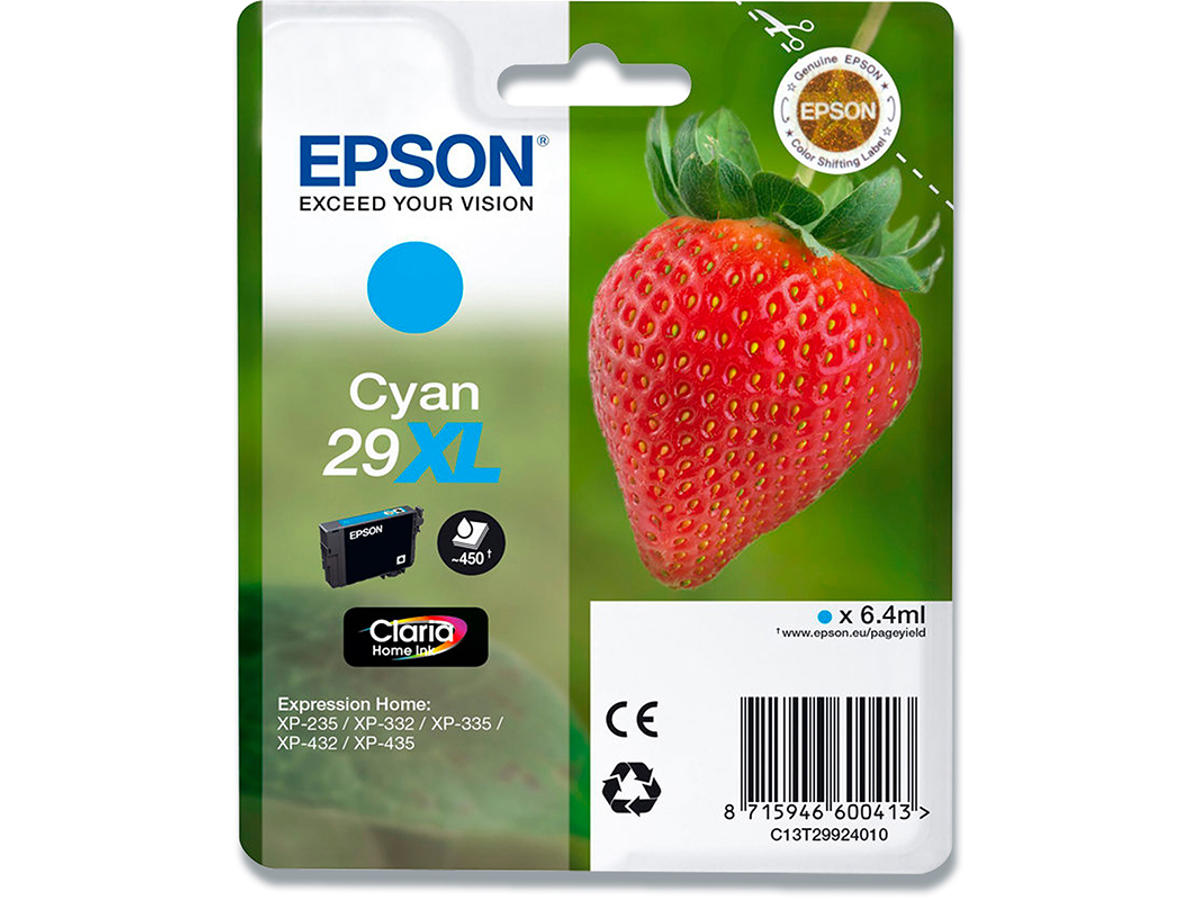 Blækpatron, 1 stk, 450 sider, Cyan-blå, Epson 29XL