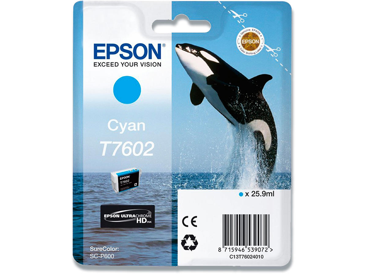 Blækpatron, 1 stk, Cyan-blå, 26 ml, Epson T7602