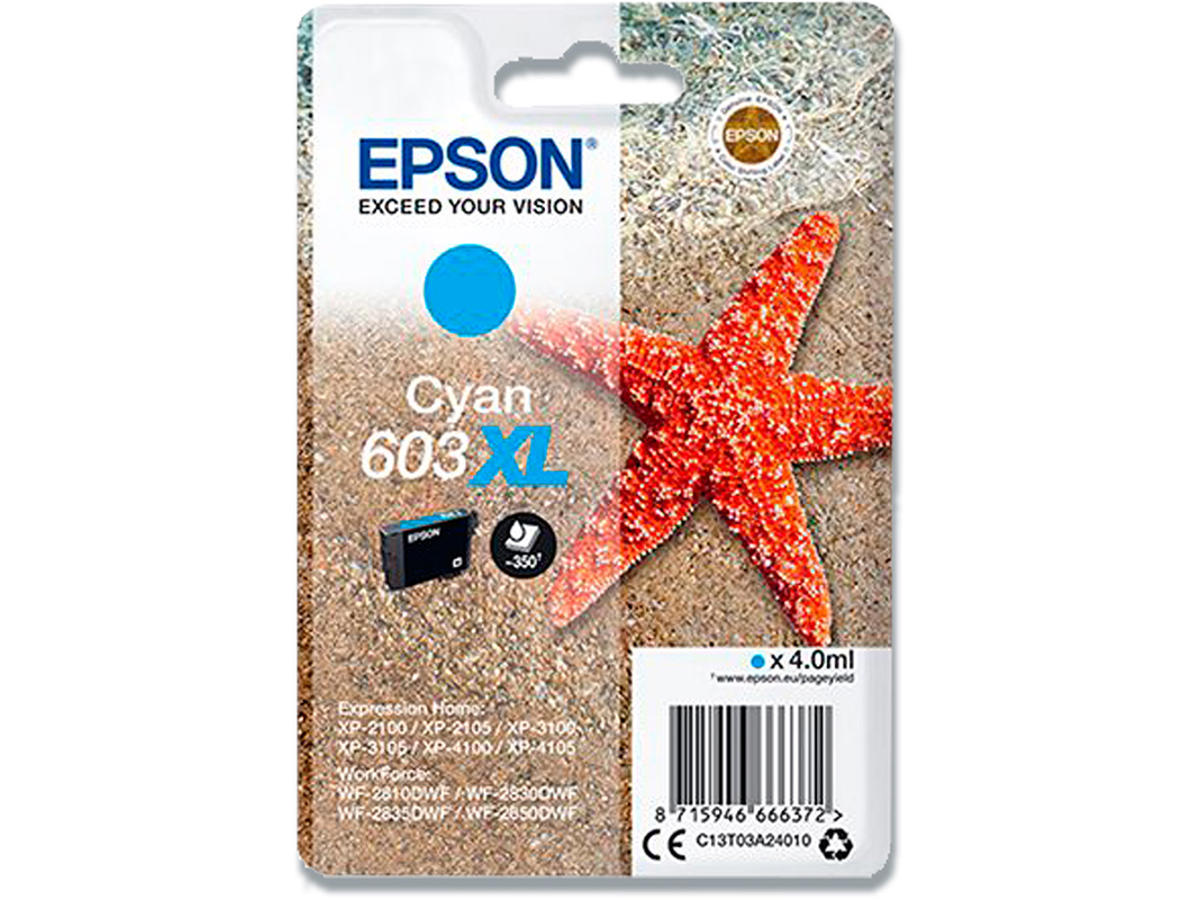 Blækpatron, 1 stk, 350 sider, Cyan-blå, Epson 603XL