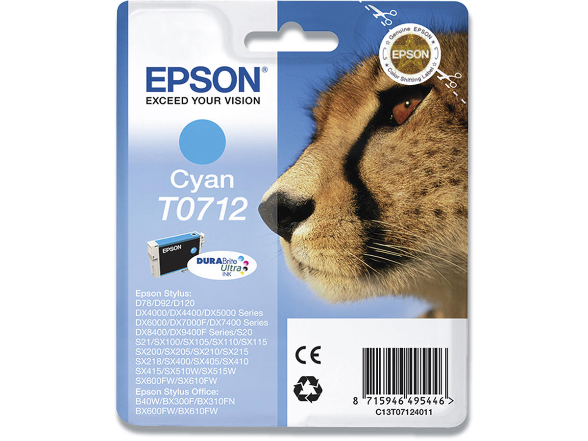 Blækpatron, 1 stk, 280 sider, Cyan-blå, Epson T0712