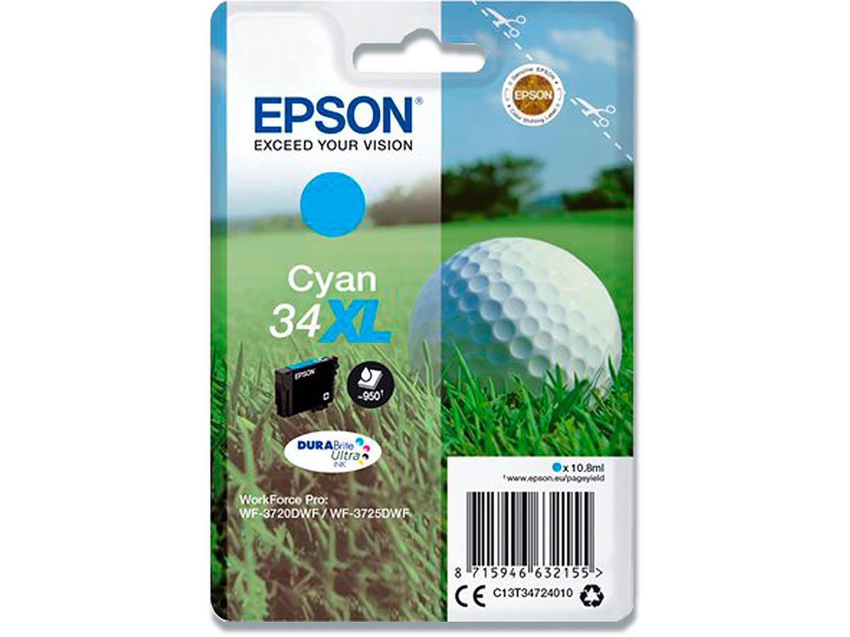 Blækpatron, 1 stk, 950 sider, Cyan-blå, Epson T3474XL