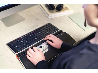 RollerMouse Red Plus er tilpasset alle de funktioner du kan bruge på en computer i dag, og til alle størrelser af skærme. Rullestangen er placeret foran kroppen og sikrer musearbejde med minimale stræk og den centrerede arbejdsstilling beskytter mod ryg-, nakke-, og skuldersmerte hele dagen.