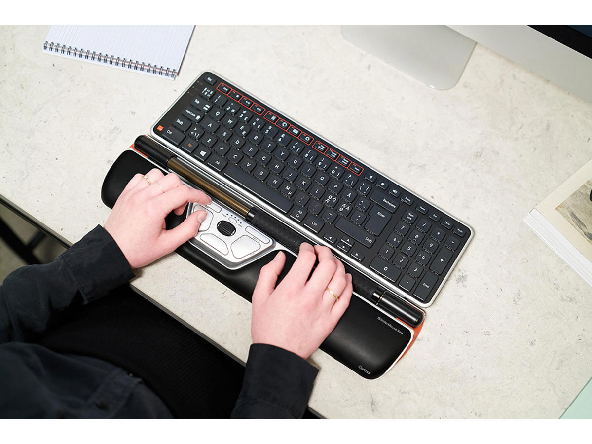 RollerMouse Red er tilpasset alle de funktioner du kan bruge på en computer i dag, og til alle størrelser af skærme. Rullestangen er placeret foran kroppen og sikrer musearbejde med minimale stræk og den centrerede arbejdsstilling beskytter mod ryg-, nakke-, og skuldersmerte hele dagen.