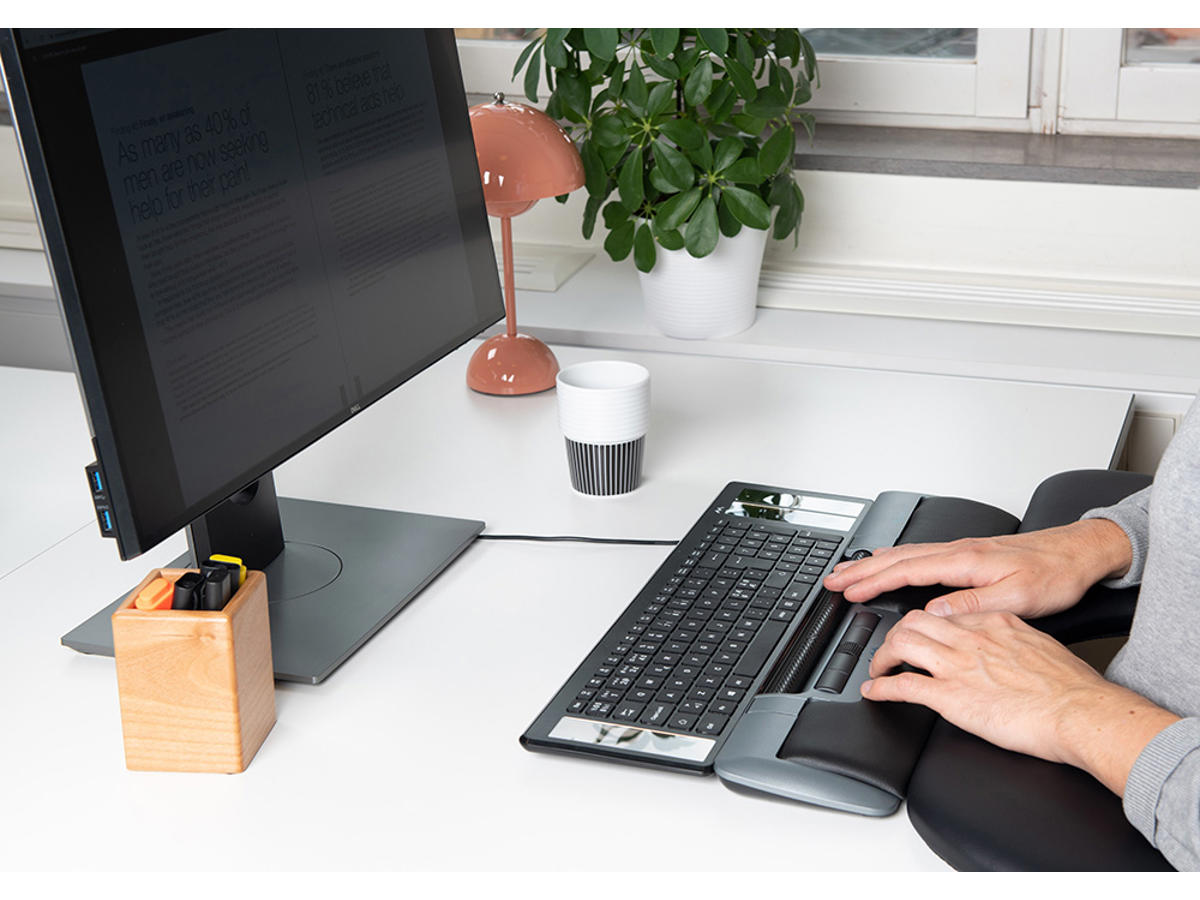 Længden er blevet tilpasset for at gøre rullestaven let tilgængelig, når du bruger tastaturet. En 4000 cpi opløsning gør det nemt at scrolle, klikke og zoome og giver en enestående præcis følelse under arbejdet.