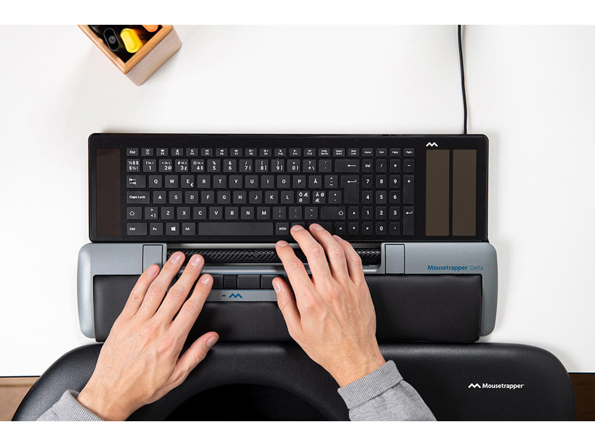 Mousetrapper Delta styres ved hjælp af Control Bar, Mousetrappers nyudviklede rullestav i kulfiber, i stedet for den unikke Control Pad. Rullestaven giver en afslappet, centreret position. Med seks programmerbare knapper kan du arbejde endnu mere effektivt. Delta er fremstillet i Sverige af genbrugsplast.