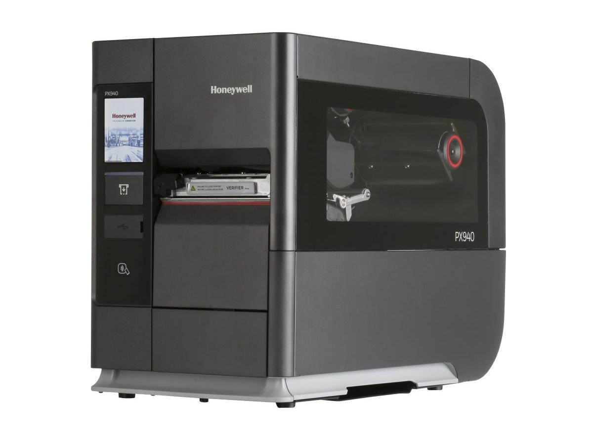 The PX940 family of high-performance industrial printers with integrated label verification technology provides error-free printing. Developed for companies that are subjected to fines levied for non-compliance to regulatory standards, and returned shipments due to unreadable barcodes, the PX940 series prints barcodes that are defect-free and 100% accurate every time. The fully integrated verifier allows for quick setting up even when printing and verifying different labels. With pass/fail and ANSI grades from 1 to 4, bad labels that do not meet an established threshold are voided and a new label is reprinted. The PX940 printer has print registration of up to +/- 0.2 mm (0.0079 in). The trend toward miniaturization requires printing on smaller and smaller labels. The PX940 will print accurately on small labels, edge to edge with little error tolerance. The PX940 printers are suited for transportation and logistics, pharmaceuticals and healthcare, shipping and distribution centers, industrial manufacturing, automotive parts suppliers, and applications that are regulated and require high precision and error-free printing. The PX940 printer is available in two versions: one with the integrated verifier, and an option without the integrated verifier. Both versions are available with standard features such as Bluetooth®: and smart printing capability, in which users can configure and fine-tune settings without the need for a host computer. With a Honeywell firmware platform that supports multiple print languages, the PX940 printer is an easy replacement for competitive printers. A rugged all-metal print mechanism, and easy printhead and tool-free platen roller replacement, help minimize downtime and maintenance needs. The PX940 printer can support a wide range of media –: including ink-in and ink-out ribbons with one-inch core size –: enabling maximum time between media resupply. Fast time-to-label and print speeds of up to 350 mm/s (14 ips) ensure that the PX940 printer can scale with the changing needs of dynamic operations. -