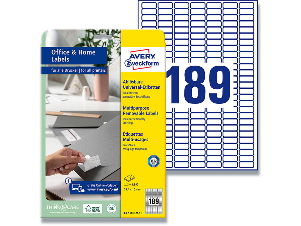 Etiketter, 25.4x10 mm, Hvid, 1.890 etiketter i alt, Avery