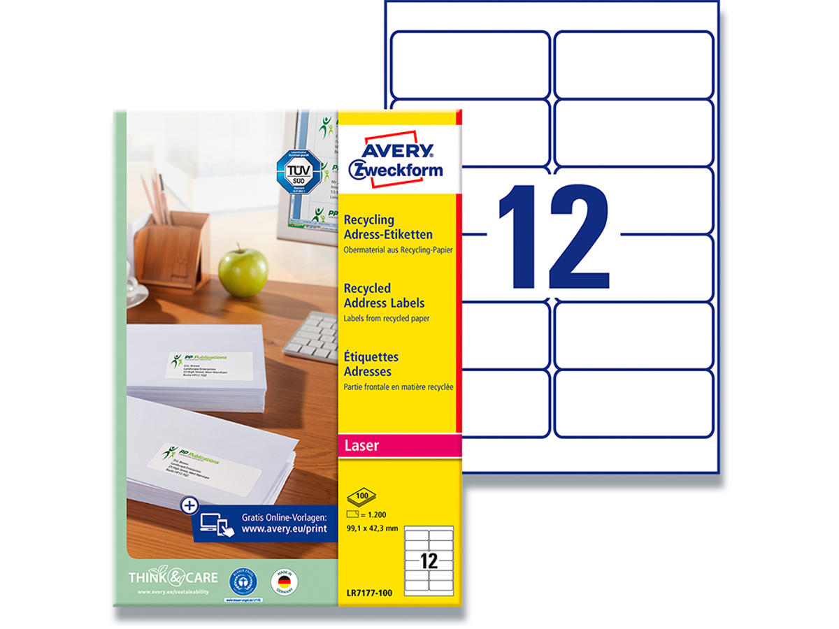 1.200 etiketter i alt, 100 ark |