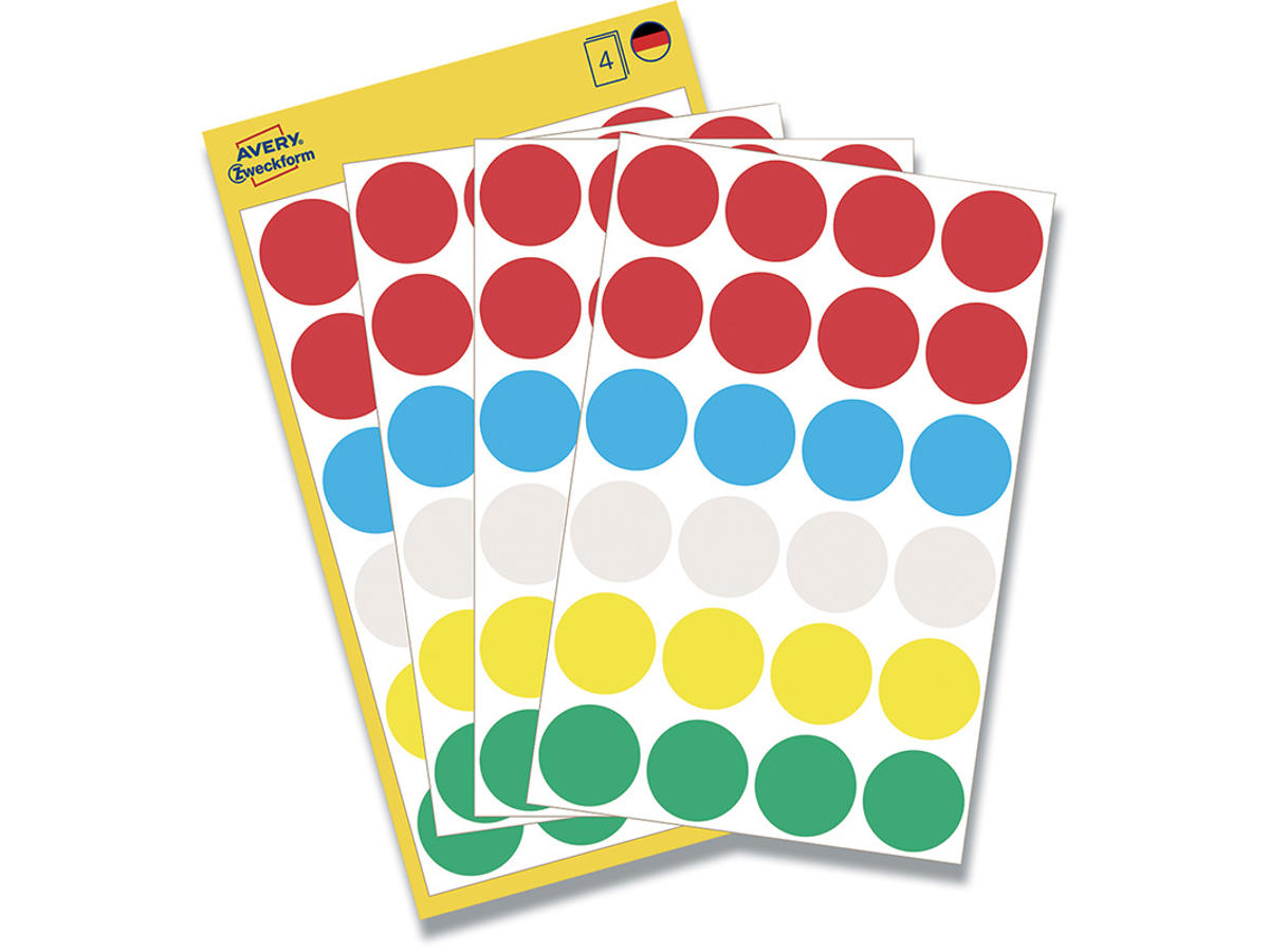 Permanentklæbende farvekodingsdots Til markering, Ø 18 mm, assorterede farver